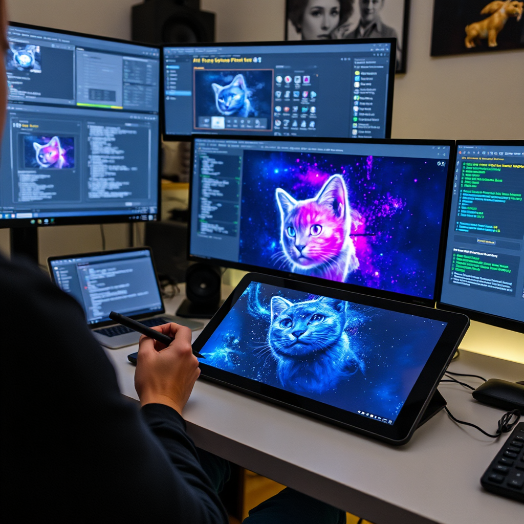 Every piece of art we create tells a silent story of exploration and curiosity. From kittens chasing shooting stars to wise old cats contemplating the void, our collection invites viewers to imagine the narrative behind the image.
