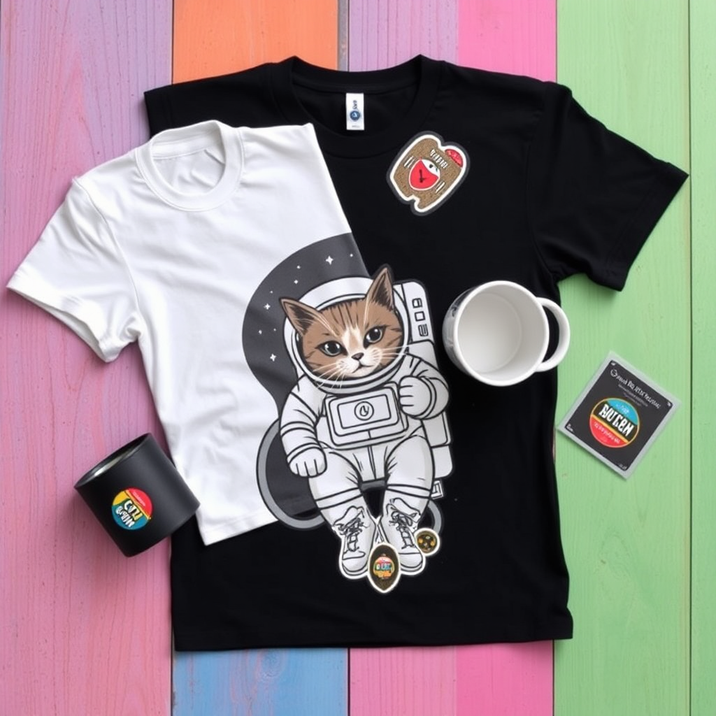 Show off your love for space cats with our exclusive apparel and accessories line. From graphic tees to coffee mugs, our merchandise features our most popular designs, making for perfect gifts or personal treats.