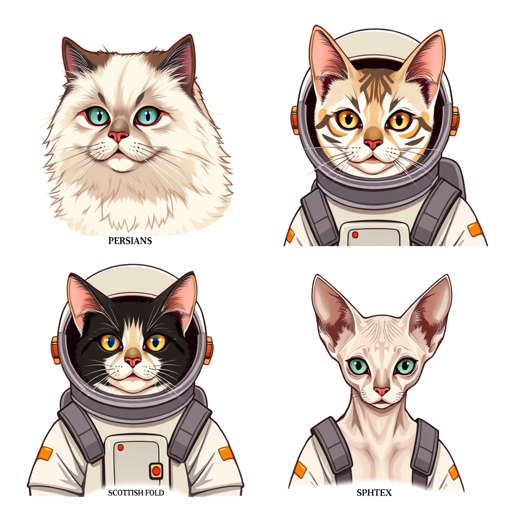The Nebula Beanz universe is inclusive of all feline kinds. Whether you love Siamese, Maine Coons, or Sphynx cats, our gallery features a wide variety of breeds reimagined as interstellar travelers and cosmic entities.