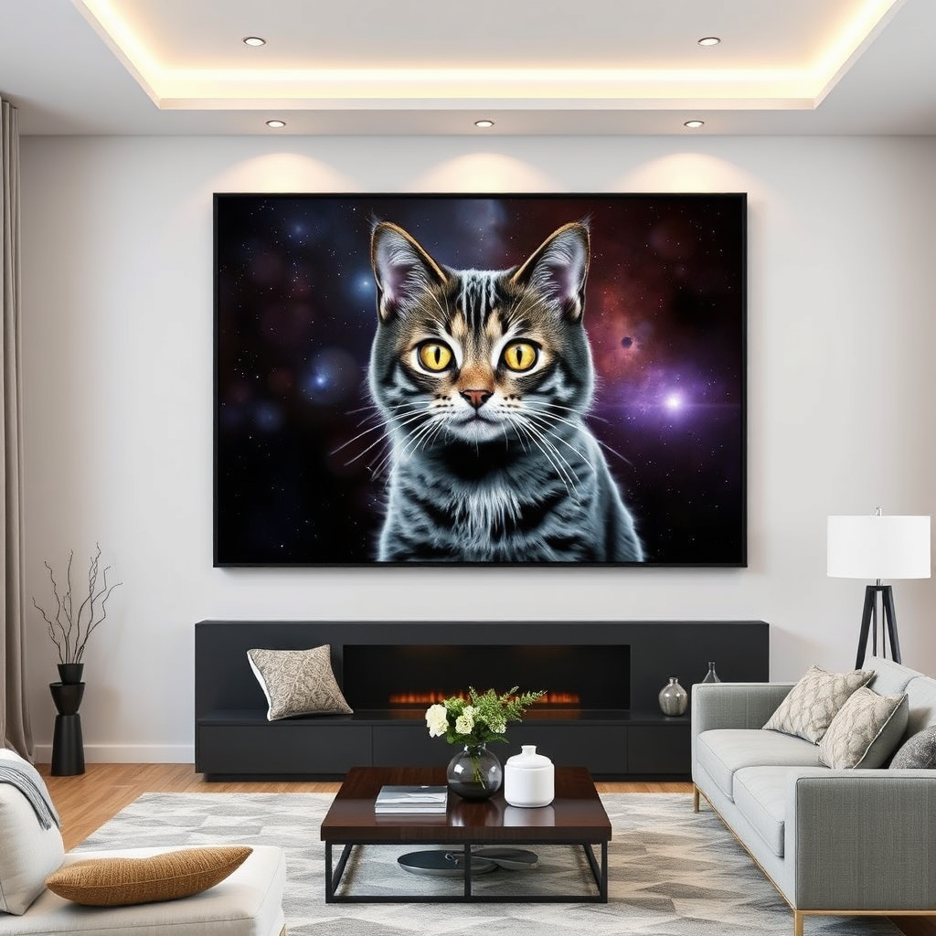Our AI generation process focuses on high-definition textures, ensuring that every whisker and distant star is rendered with precision. This attention to detail allows for large-format printing without losing the crispness of the original digital creation.