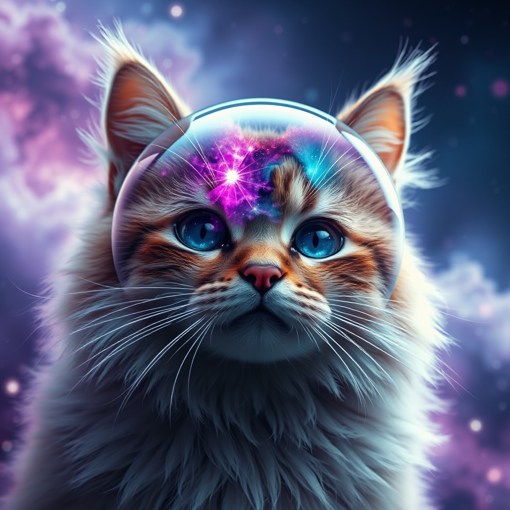 Discover a unique collection where adorable cats meet the wonders of the nebula in stunning digital masterpieces.